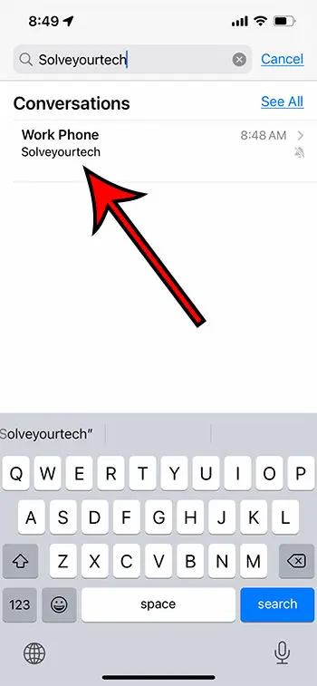 単語または番号を含むすべての会話スレッドは、iPhone画面に表示されます。探していた特定のテキスト会話をタップします。
