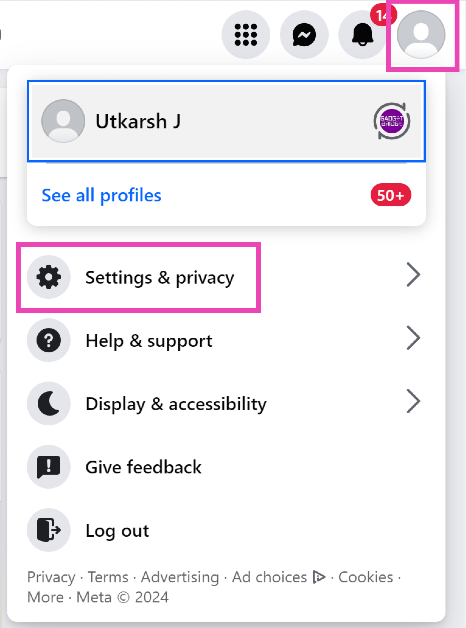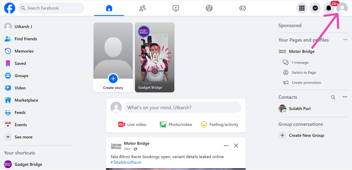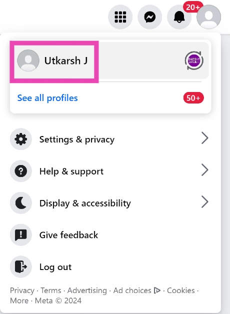 ステップ1:Facebookに移動してクリックしてくださいプロフィール写真画面の右上隅に。