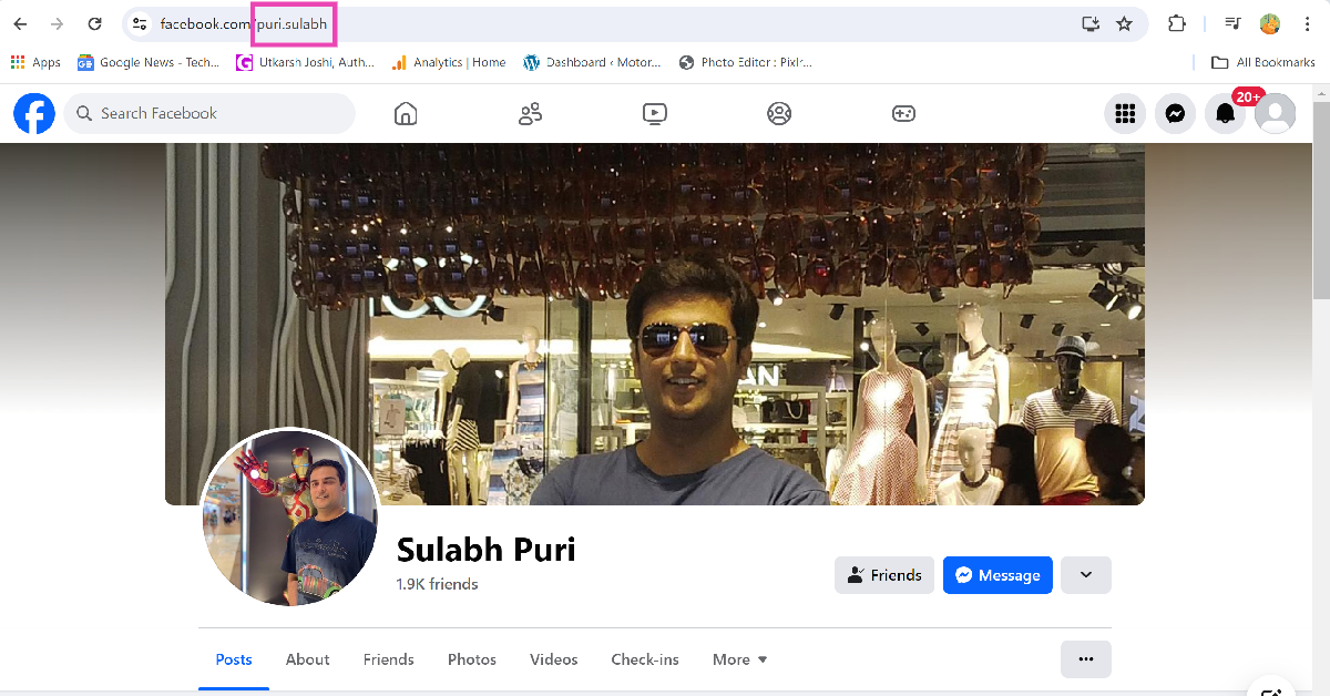 ステップ4:プロフィールページに載ったら、を見てくださいアドレスバーブラウザで。後のテキストwww.facebook.com/ユーザー名です。