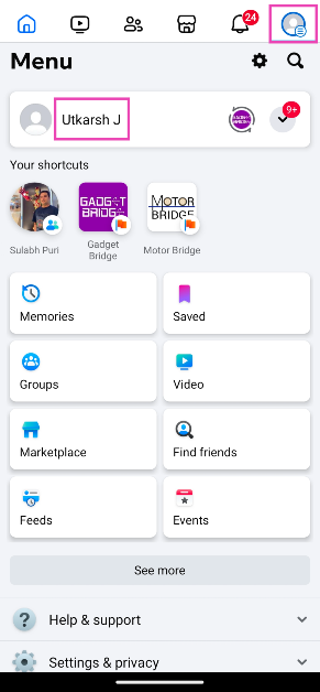 ステップ2:ヒットしますハンバーガーメニュー画面の右上隅で、あなたをタップしますプロフィール名。