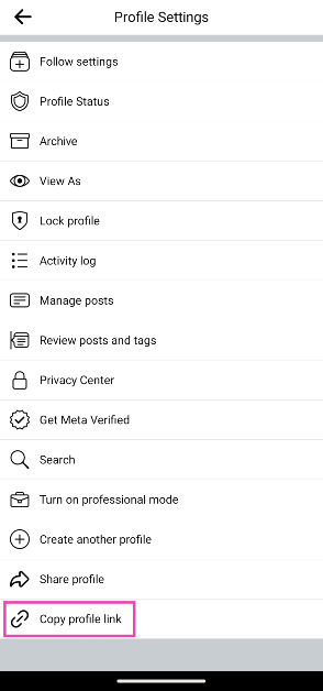 ステップ4:タップしますプロファイルリンクをコピーしますテキストボックスに貼り付けます。後のテキストwww.facebook.com/ユーザー名です。
