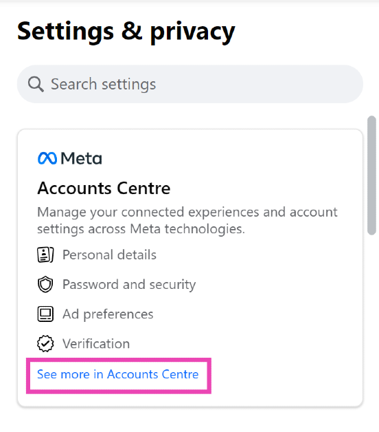 ステップ3:選択しますアカウントセンターの詳細をご覧くださいサイドバーから。