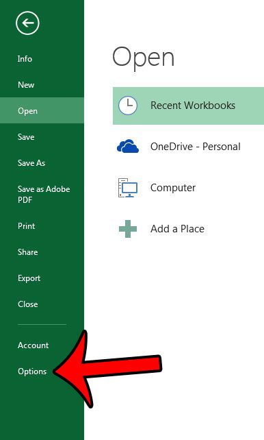 ステップ3:クリックしますオプションウィンドウの左列のボタン。これは開きますExcelオプションウィンドウ。