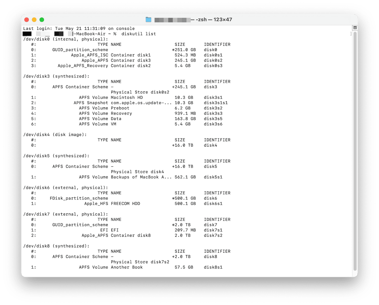 diskutil list - このコマンドを入力します(ここで、「disk_identifier」はステップ2に記載されている識別子です。
