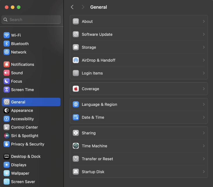 でシステム設定、 選ぶ一般的な左側とソフトウェアアップデート右側に。
