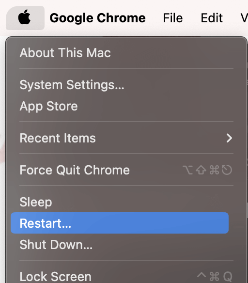 クリックしますアップルメニュー選択します再起動。プロンプトが表示されたらログインします。