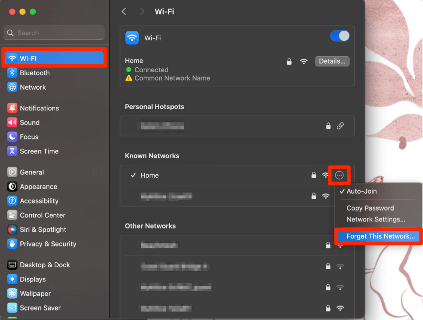 時には、Mac上のWi-Fiへの接続が中断または破損することがあります。ネットワークを削除して再追加するだけで、Wi-Fiのこれらの矛盾を修正する可能性があります。