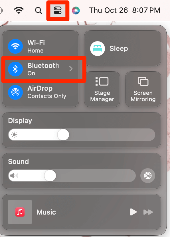 メインメニューで、をクリックしますコントロールセンターアイコン。次に、選択しますブルートゥース。