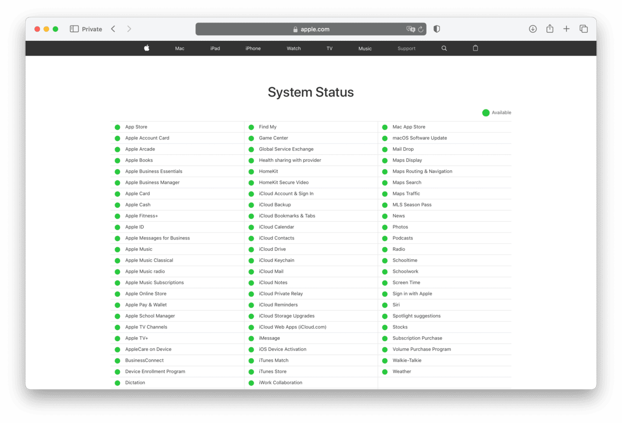 - Appleのサーバーの問題:彼らが忙しいか、ダウンしている場合、あなたはあなたのマコーを更新することができません。