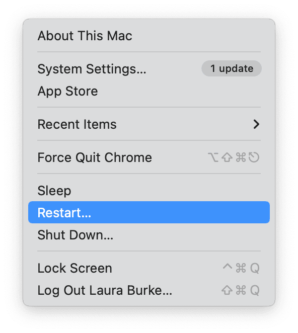 次に、Macも再起動しましょう。このクイックヒントは、さまざまなアプリケーションのグリッチを解決できます。多くの場合、ユーザーが尋ねるソリューションです。なぜMacに新しいメモを作成できないのですか?メインAppleメニューから[再起動]をクリックするだけです。