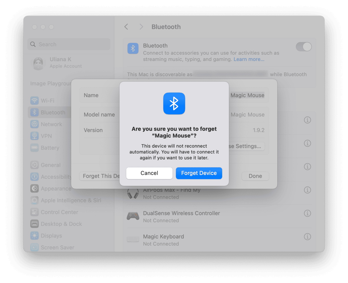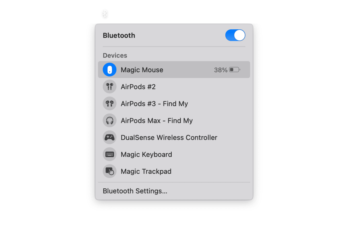 はい、それは決まり文句ですが、それはうまくいくからです。したがって、次のステップは、Bluetoothマウスをオフにしてから再びオンにすることです。それがうまくいかない場合は、Bluetoothメニューバーのアイコンから、またはそこにある場合、またはコントロールセンターからBluetoothをオフにしてから再びオンにします。