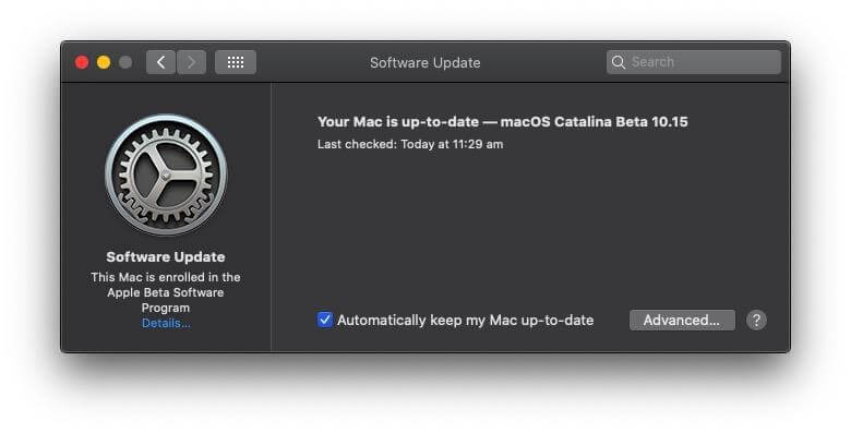 - 毎晩の更新にアクセスできる小さなスニッチ設定を変更します。その更新はカタリナと互換性があります。