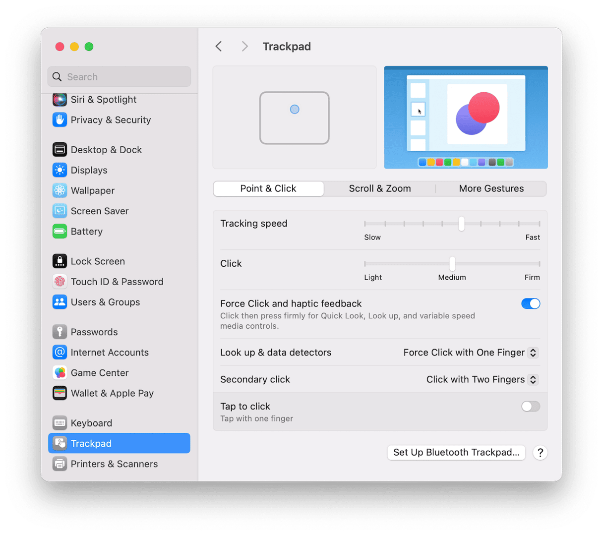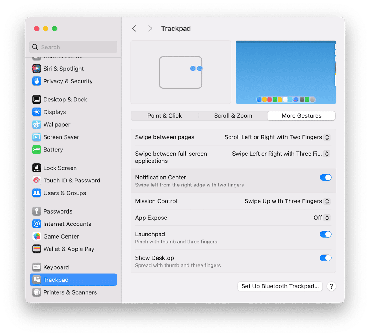 - システム設定>トラックパッドで、より多くのジェスチャーを選択します。