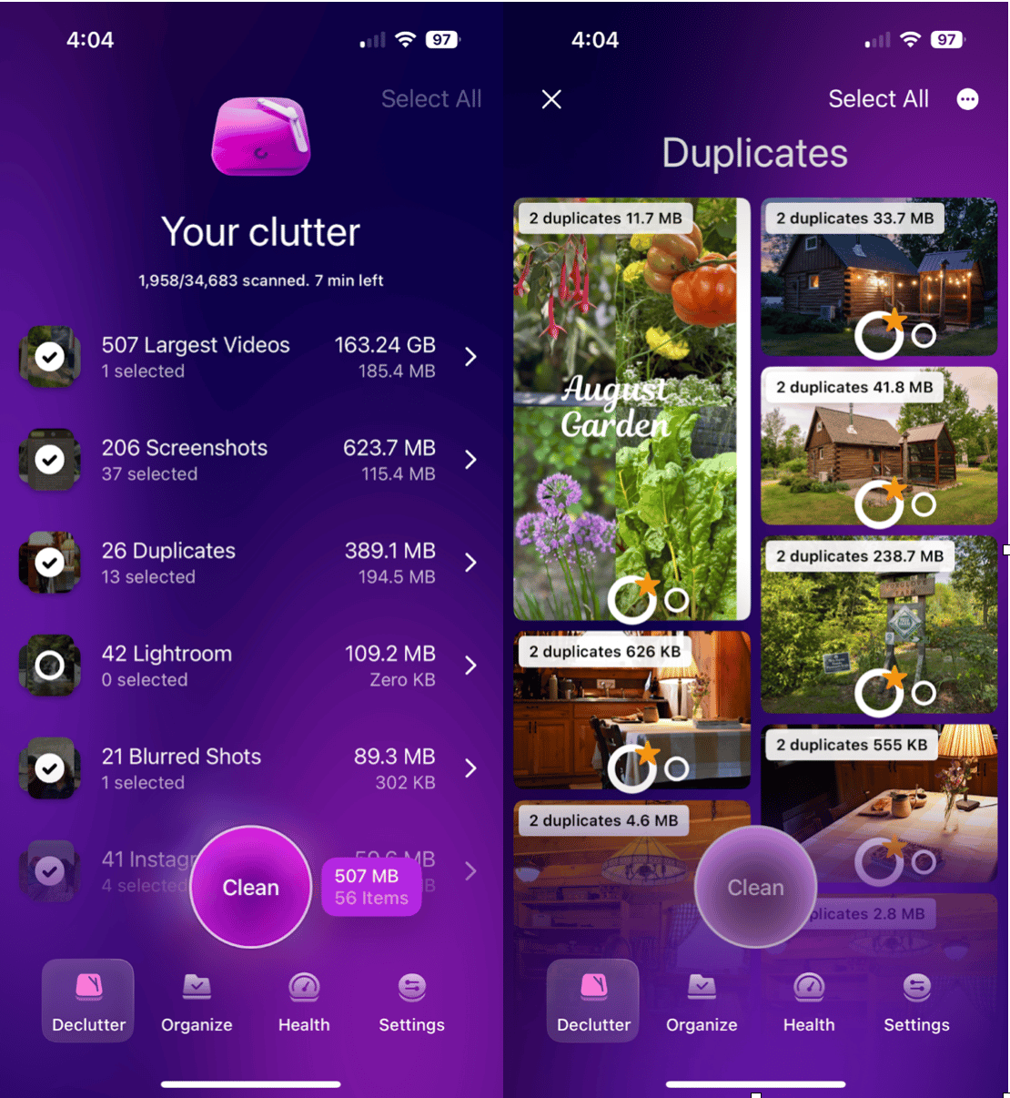 iPhoneが削除できないと思われる写真やビデオで散らかっている場合、クリーニングアプリはネイティブ写真アプリをバイパスして、もう必要ない写真やビデオを削除できます。