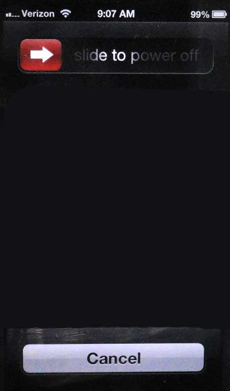 ステップ1:携帯電話の上部に電源スイッチを押し続けるとスライドして電源を切る以下に示す画面。