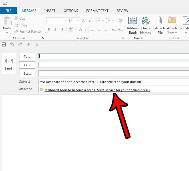 以下のチュートリアルでは、別のOutlookユーザーにメッセージを転送する場合に、この代替転送方法の使用方法を示します。必要に応じて、追加の身体情報を追加して、含まれている添付ファイルに含まれるものに関する詳細情報を提供することもできます。