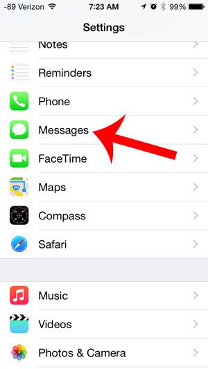 ステップ2:下にスクロールして選択しますメッセージオプション。