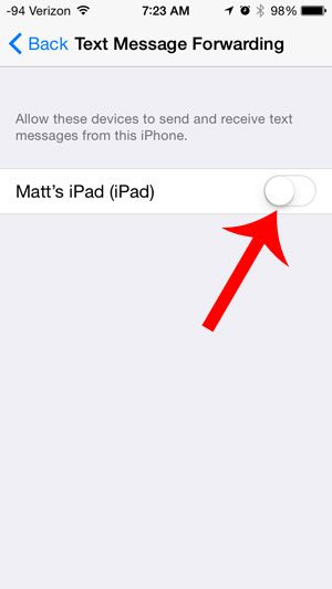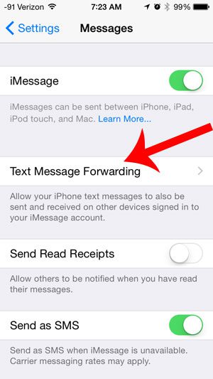 私たちのガイドは、これらの手順の写真を含め、iPhone 5にテキストメッセージを転送する方法に関する追加情報を以下に続けます。