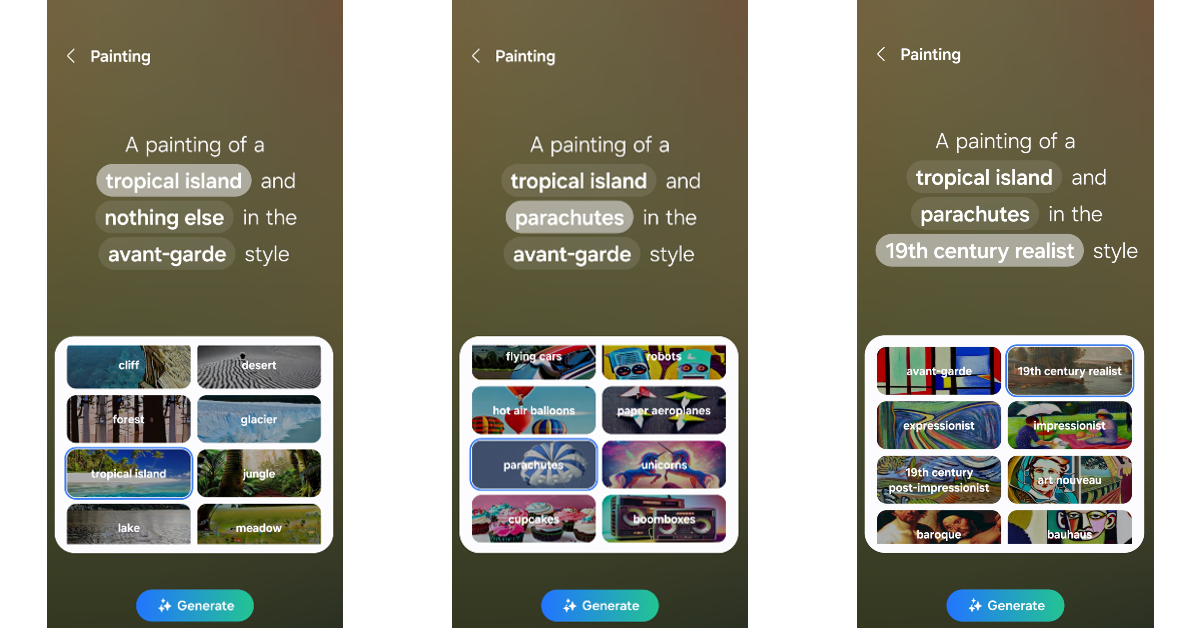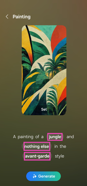 ピクセルで優れたAIの壁紙を生成するトリックは、プロンプトを調整することです。スマートフォンでは無料のプロンプトをまだ入力することはできませんが、テーマを選択して画像の重要な属性を指示することができます。最良の結果を得るには、プロンプトのテーマが一貫して現実的であることを確認してください。