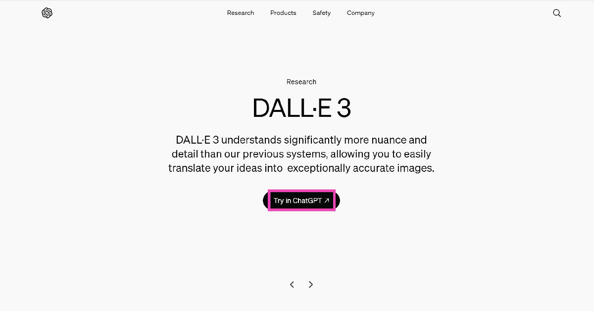 ステップ1:に行きます公式Dall-E 3ウェブサイトクリックしてくださいchatgptでお試しください。