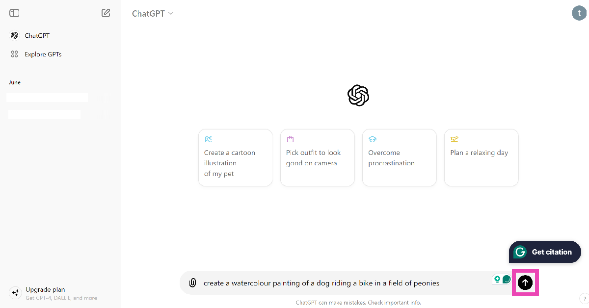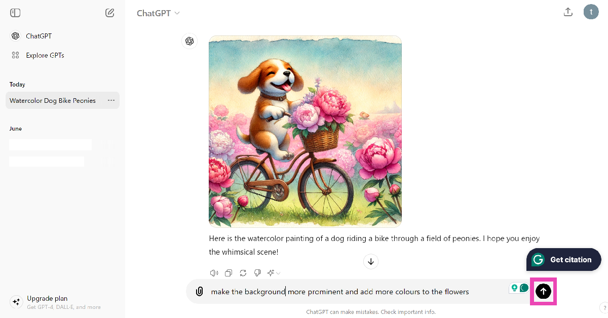 ステップ5:画像を改善するためのフォローアッププロンプトがある場合は、テキストボックスに入力してヒットします送信。