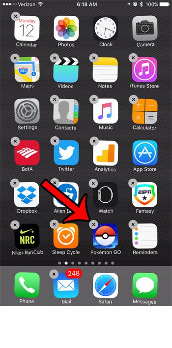 ステップ2:タップして保持しますポケモンゴー小さいまでアプリアイコンxアプリアイコンの左上隅に表示され、それをタップしますx。