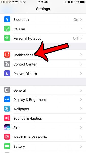 ステップ2:選択します通知オプション。