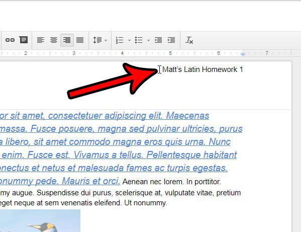 ステップ2:ページの上部にあるドキュメントのヘッダーセクションの内部をクリックします。