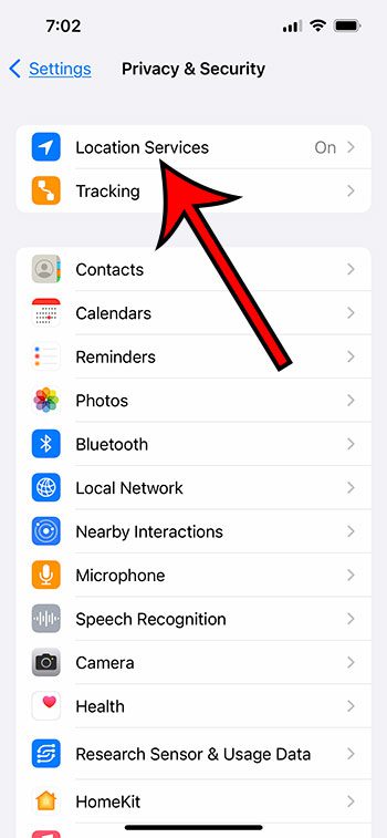 ステップ3:タップしますロケーションサービス画面の上部に。