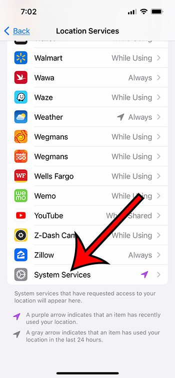上記のセクションでiPhone 13でHollow Arrowを取り除く方法を学んでいるときは、[システムサービス]メニューの内側の「システムサービス」セクションに送信しました。 oyuが中空の矢印を削除できるオプションは別として、このメニューには他にもいくつかの興味深いオプションがあります。