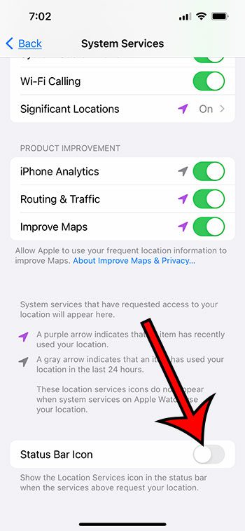 特定のアプリのロケーションアクセスを削除することは別として、アプリが場所を使用するたびに矢印が画面の上部に表示されないように設定を変更することもできます。