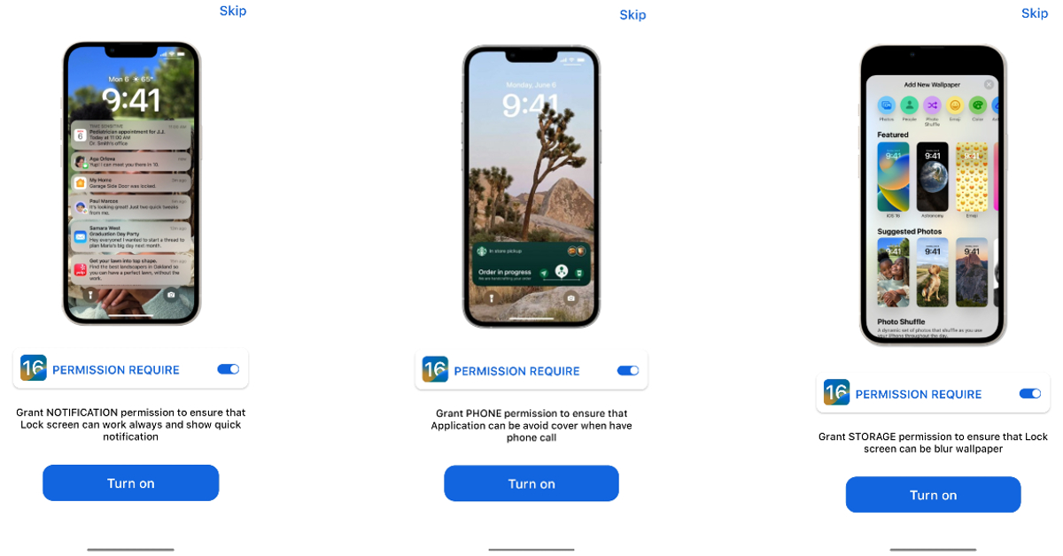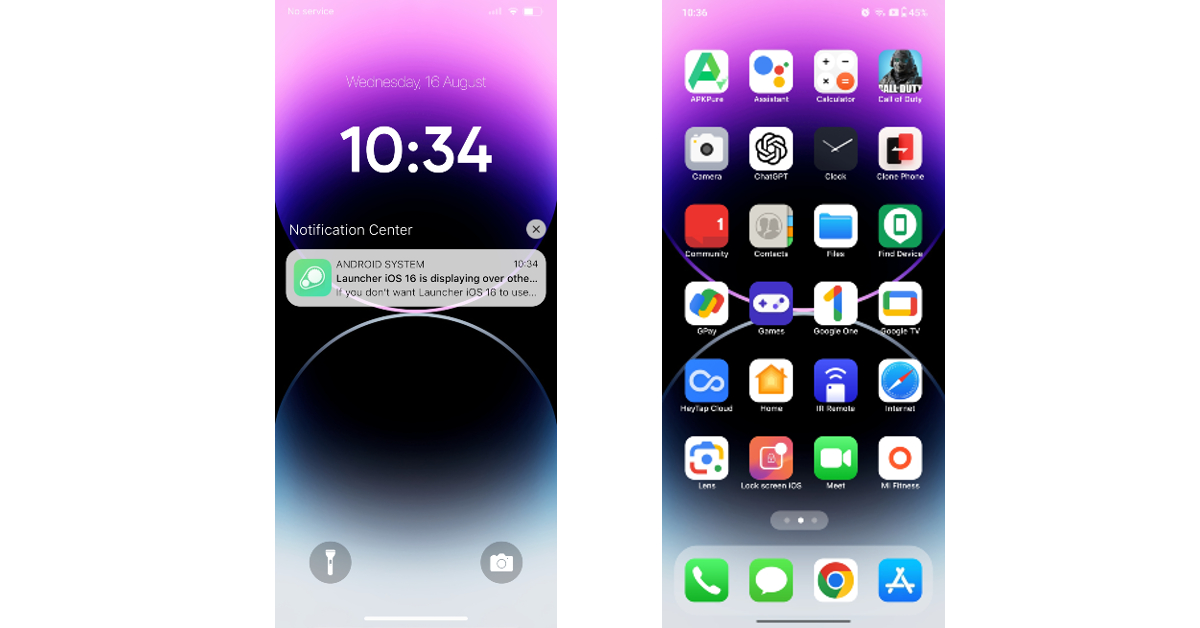AndroidデバイスにiOSランチャーをインストールし、機能するために必要なストレージ、通知、および電話許可を提供します。 Dynamic IslandおよびControl Centerの特定のアプリをダウンロードすることもできます。