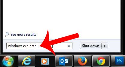 ステップ2:「Windows Explorer」(引用符なし)と入力して、[スタート]メニューの下部にある[検索]フィールドに入力します。