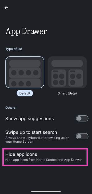 ステップ3:タップしますアプリアイコンを非表示にします。
