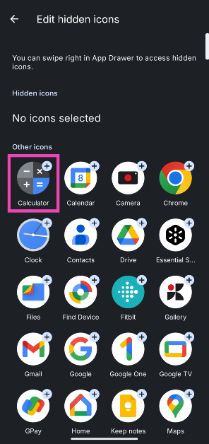 アプリの引き出しに移動し、楕円をタップし、「アプリアイコンを非表示」を選択し、非表示にするアプリをタップします。