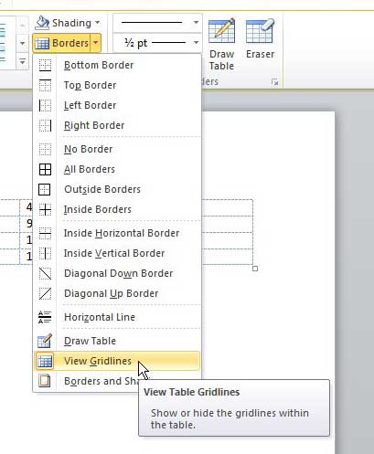 ただし、Word DocumentまたはTableを編集して、グリッドラインが気を散らすものであることを見つけた場合、またはそれらのグリッドラインなしで印刷されたときにテーブルがどのように見えるかを確認したい場合は、2010年にテーブルグリッドラインを隠すことができます。