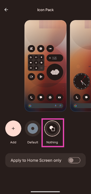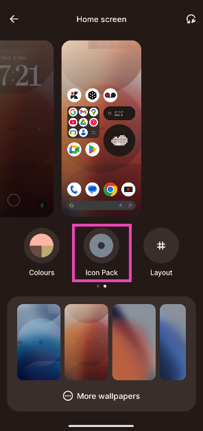 ステップ3:に切り替えますホーム画面セクションとタップオンしますアイコンパック。