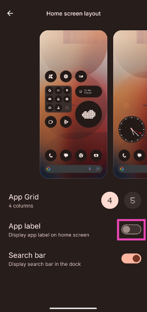 アプリのラベルまたは名前を非表示にするオプションは、デバイスの最小限の外観が必要な場合に役立ちます。 Nothing Icon Packの暗いテーマとうまくペアになります。名前のないアプリのアイコンに慣れるには時間がかかりますが、トレードオフはそれだけの価値があります。アプリを見つけるのに問題がある場合は、アプリのラベルがそのままのままであるアプリドロワーでいつでも調べることができます。