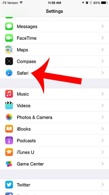ステップ2:下にスクロールして選択しますサファリオプション。