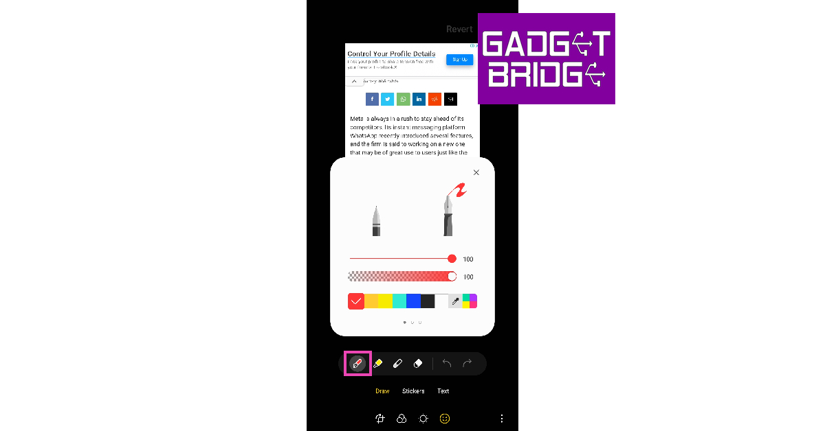 これは、Androidスマートフォンのスクリーンショットを強調し、描画し、書く方法です。 Androidスマートフォンにスタイラスが付いている場合、簡単に書くことができます。そうでない場合は、ペンのサイズを小さくして、指を使用してスクリーンショットに書き込みます。また、Androidデバイスでスクリーンショットを編集するための多様なツールセットを提供します。