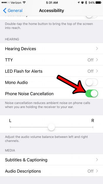 ステップ4:下にスクロールします聴覚セクション、次に有効にします電話ノイズキャンセルオプション。
