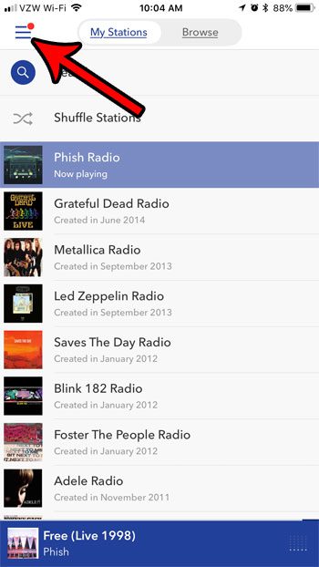 ステップ2:画面の上部にあるメニューボタンをタップします。それは、「ハンバーガーメニュー」と呼ばれることもある3つの水平線を持つものです。