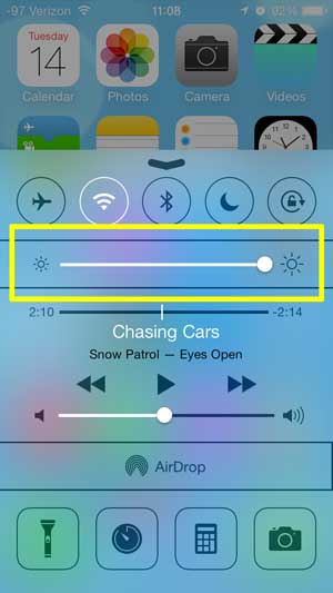 以下の指示は、iPhoneがiOS 7を実行していると仮定します。iOS7にアップグレードしていない場合、以下の手順でアクセスするコントロールセンターにアクセスできません。 iOS 7よりも低いバージョンを実行している場合は、この記事を読むことができます。その記事では、画面の明るさを下げることを扱っていますが、画面をより明るくする方法を学ぶために簡単に調整できます。