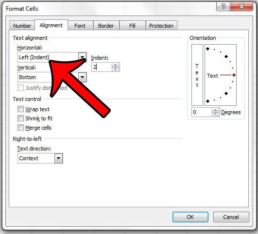 - 下のドロップダウンメニューをクリックすることもできます水平インデントがセル全体に分布する方法を調整したい場合。クリックしますわかりました変更が完了したら、変更を保存し、ウィンドウを閉じます。