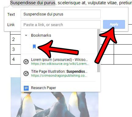 ステップ3:選択しますブックマークドロップダウンリンク、作成したブックマークをクリックします。その後、クリックします適用するリンクを作成するボタン。