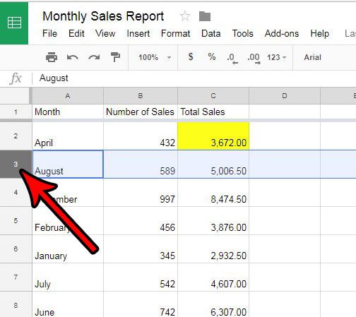 ステップ2:スプレッドシートの左側にある灰色の行番号を選択します。