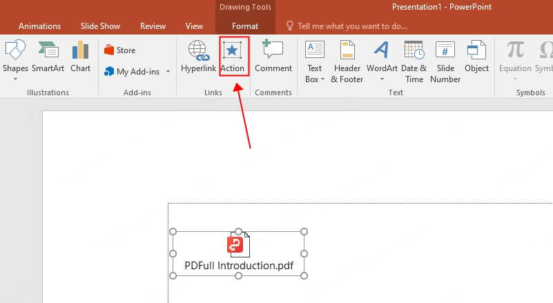 PDFファイルの一部の部分を挿入することに加えて、PDFをオブジェクトとして埋め込み、ファイル全体をプレゼンテーションから直接アクセスできるようにすることもできます。これがそれを行う方法です: