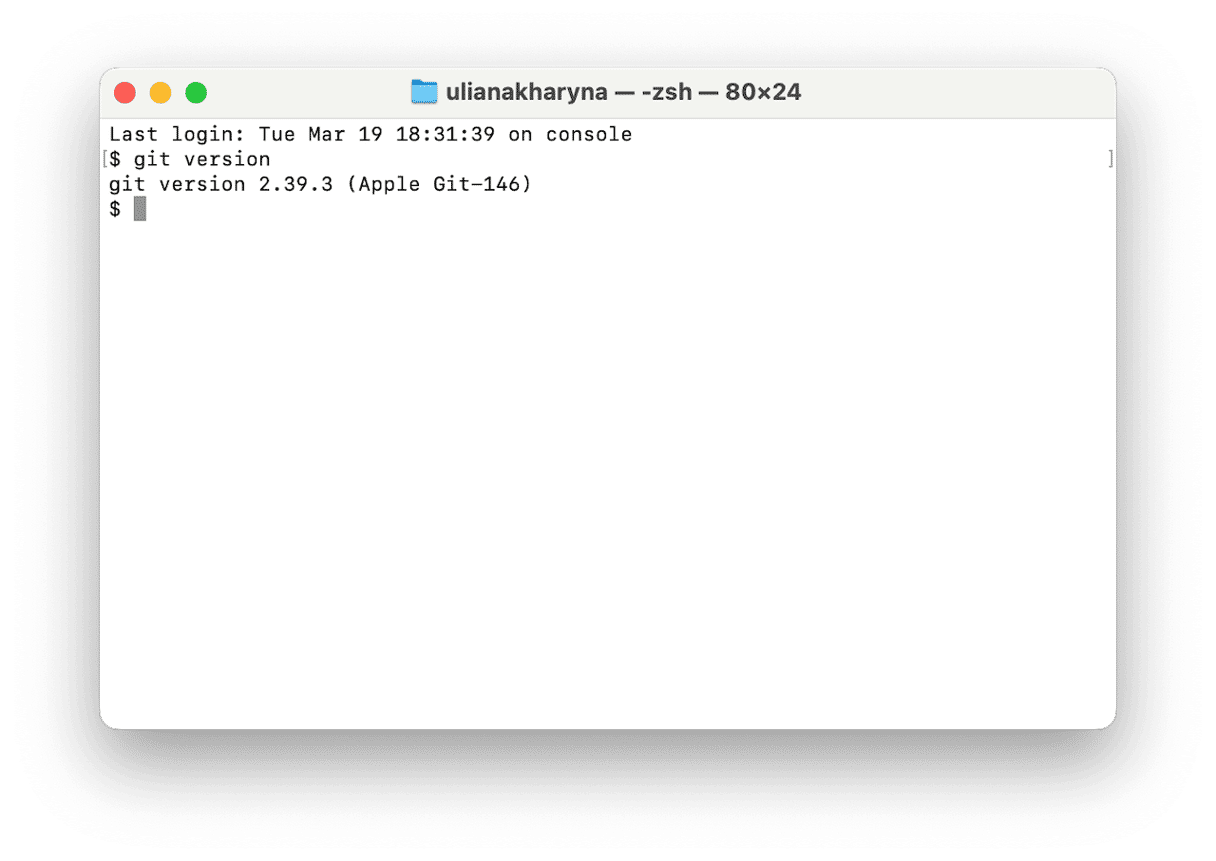 紹介で述べたように、あなたはすでにあなたのMacにgitをインストールしているかもしれません。 Appleのコマンドラインツールをインストールすると、自動的にインストールされます。確認するには、端子とタイプを開きますgit version