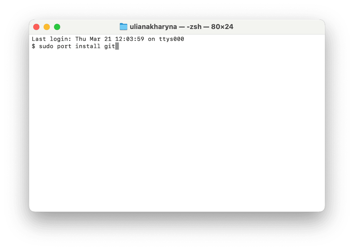 MacPortsをインストールしたら、またはMacに既にインストールされている場合は、先に進んでGitをインストールするために使用できます。