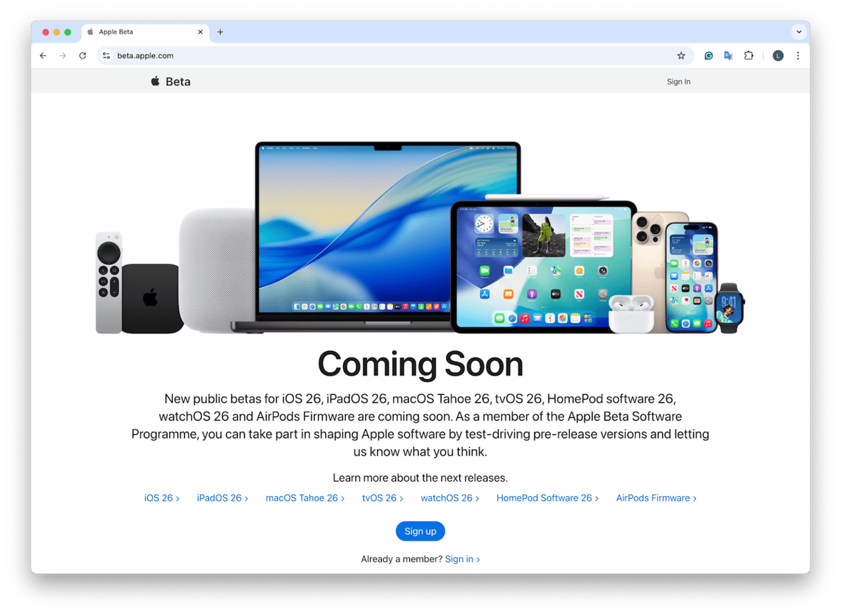 開発者以外のユーザーと好奇心の強いユーザー向けに、Apple Macos Tahoe Public Betaは2025年7月にリリースされ、Apple Beta Softwareプログラム全体に開かれています。これは、開発者ログインを差し引いた開発者ルートと非常によく似ています。